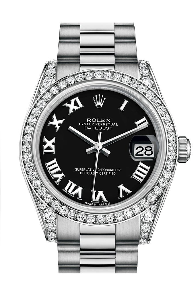 Rolex Datejust 31 Black Roman Dial Diamond Bezel Lug 18K White Gold President Ladies Watch 178159