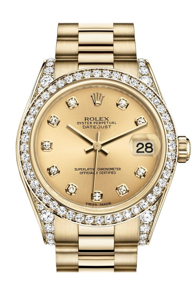 Rolex Datejust 31 Champagne Diamond Dial Diamond Bezel Lug 18K Yellow Gold President Ladies Watch 178158
