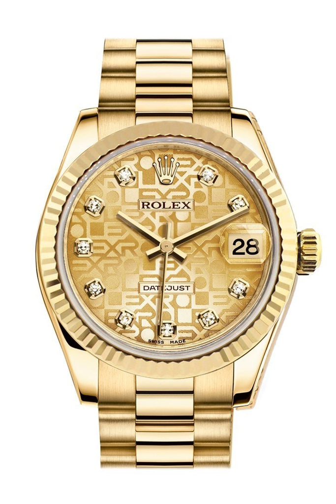 Rolex Datejust 31 Champagne Jubilee Diamond Dial Fluted Bezel 18K Yellow Gold President Ladies Watch 178278
