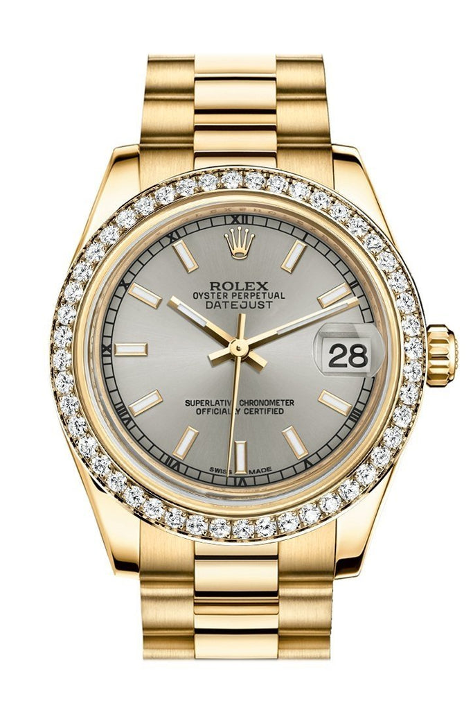Rolex Datejust 31 Silver Dial Diamond Bezel 18K Yellow Gold President Ladies Watch 178288