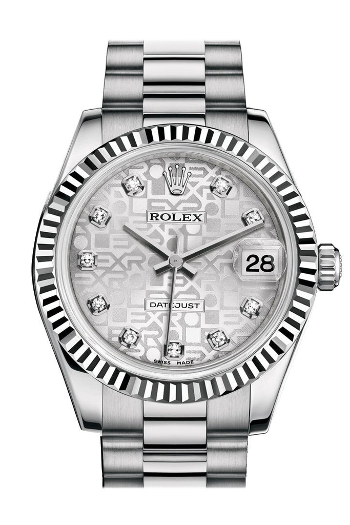 Rolex Datejust 31 Silver Jubilee Diamond Dial Fluted Bezel 18K White Gold President Ladies Watch 178279