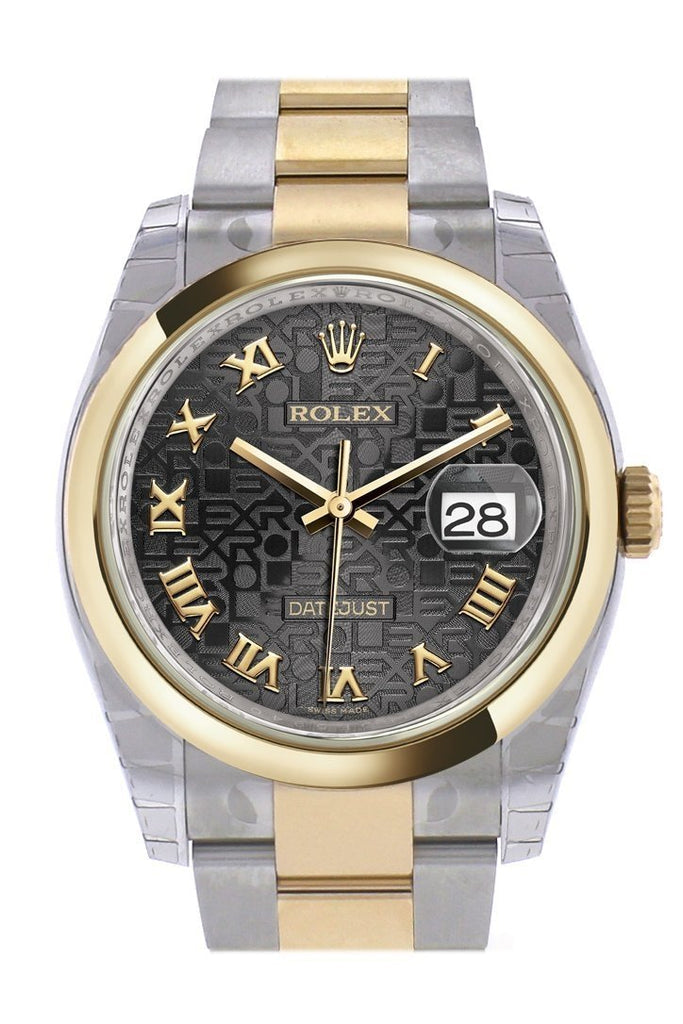 Rolex Datejust 36 Black Jubilee Roman Dial 18k Gold Two Tone Oyster Watch 116203