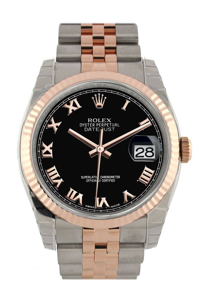 Rolex Datejust 36 Black Roman Dial Fluted Steel and 18k Rose Gold Jubilee Watch 116231