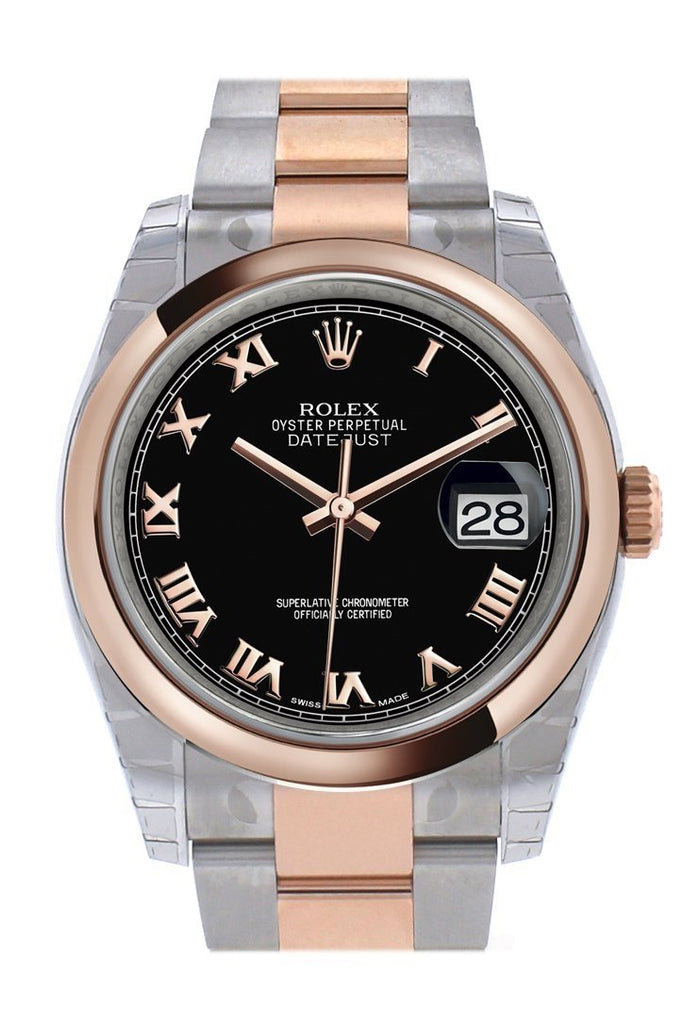 Rolex Datejust 36 Black Roman DialSteel and 18k Rose Gold Oyster Watch 116201
