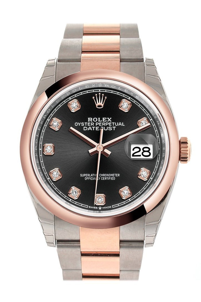 Rolex Datejust 36 Black set with diamonds Dial Dome Rose Gold Two Tone Watch 126201 NP