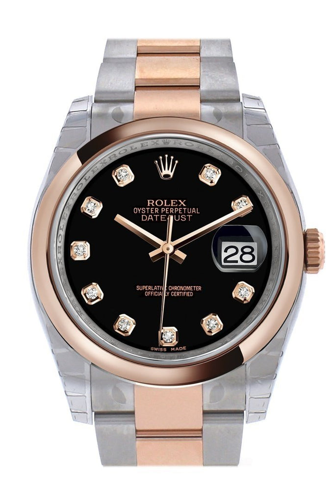 Rolex Datejust 36 Black set with diamonds DialSteel and 18k Rose Gold Oyster Watch 116201
