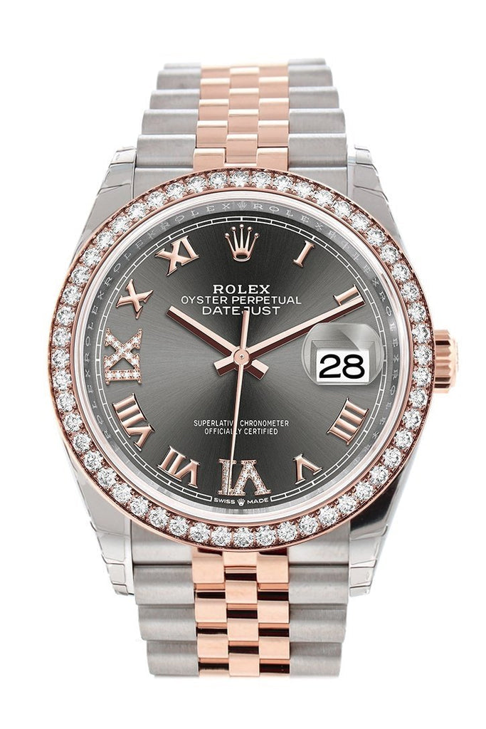 Rolex Datejust 36 Dark Rhodium Set with Diamonds Dial Diamond Bezel Rose Gold Two Tone Jubilee Watch 126281RBR 126281 NP