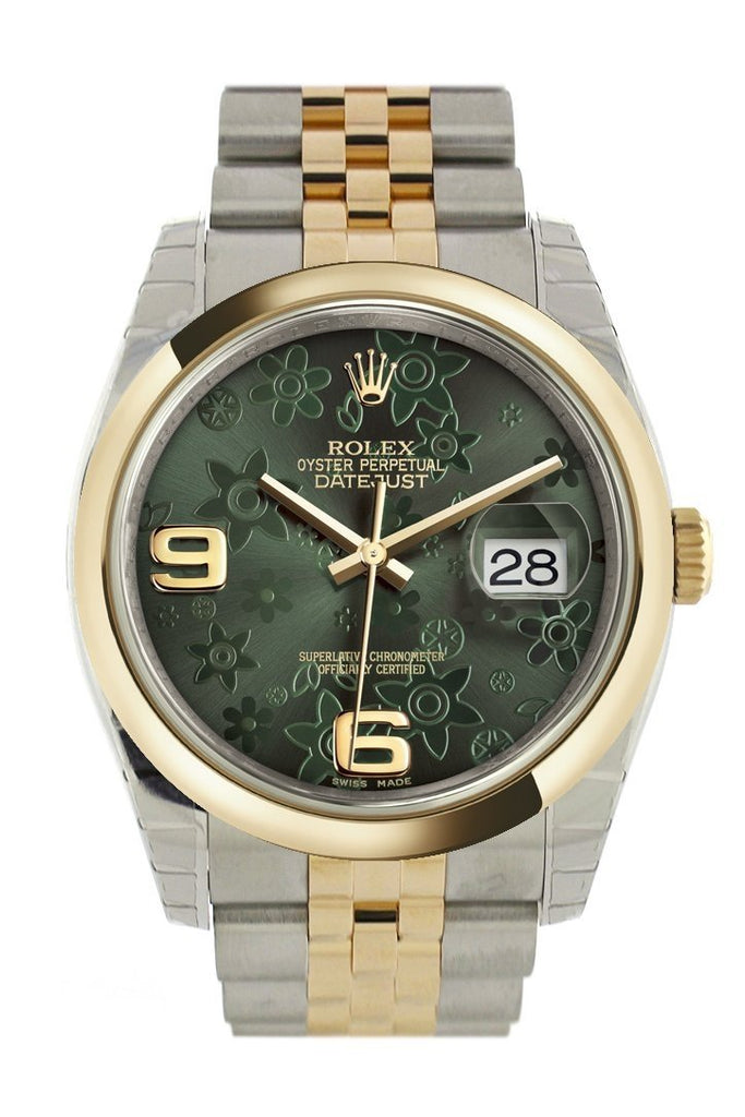 Rolex Datejust 36 Green floral motif Dial 18k Gold Two Tone Jubilee Watch 116203