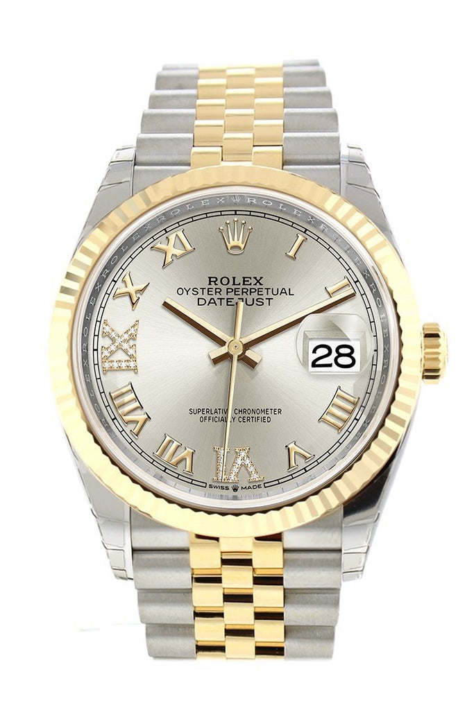 Rolex Datejust 36 Silver set with diamonds Dial Fluted Bezel Jubilee Yellow Gold Two Tone Watch 126233 NP