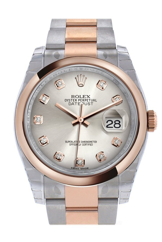 Rolex Datejust 36 Silver set with diamonds Dial Steel and 18k Rose Gold Oyster Watch 116201