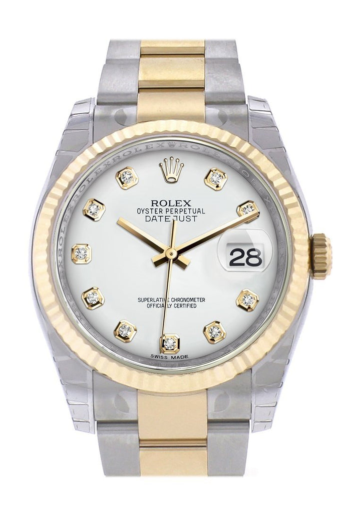 Rolex Datejust 36 White Diamond Dial Fluted 18K Gold Two Tone Oyster Watch 116233